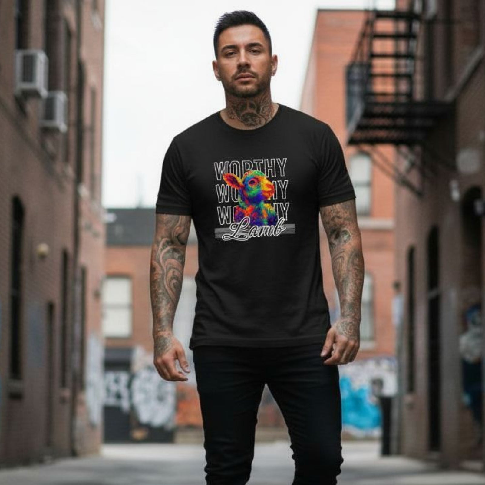 This T-Shirt celebrates the glory of Jesus, the Lamb who was slain yet reigns victorious. A powerful reminder of Christ’s sacrifice and triumph. Wear it as a declaration of worship and reverence to the One who is truly worthy.
